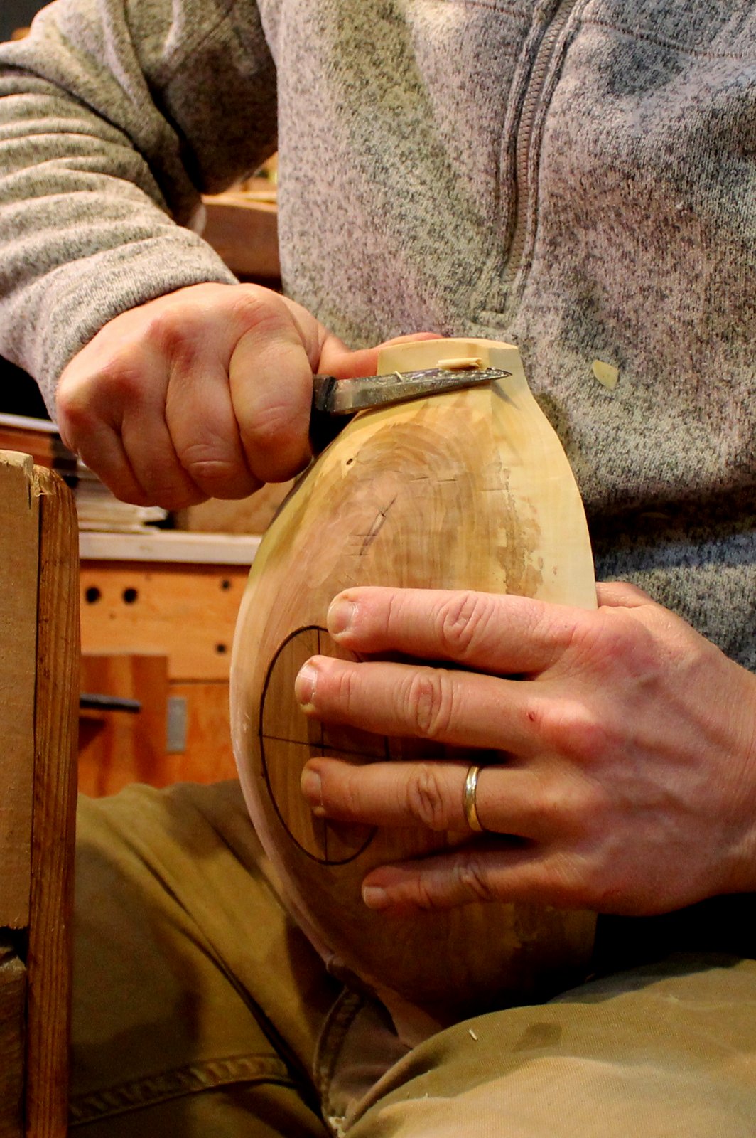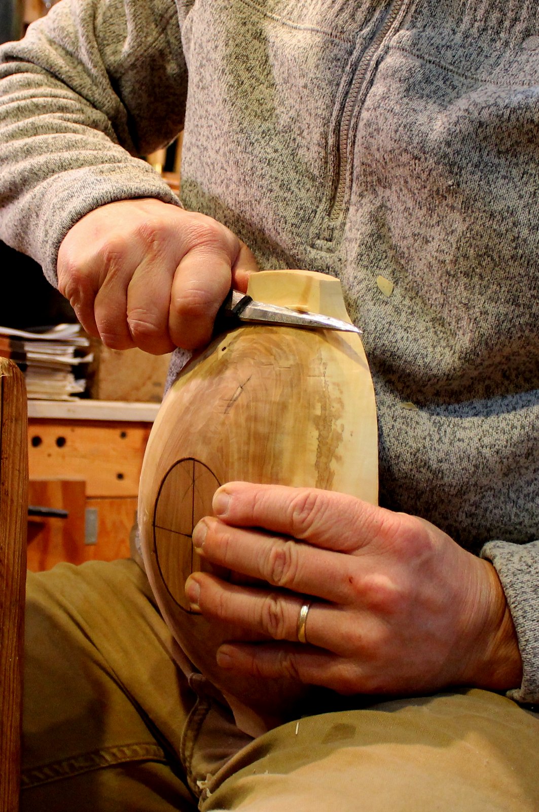 One last thing: my last post focused on holding with holdfasts when working with gouges, but for many tasks I prefer hands and a knife. I use a knife at some point on everything I make.