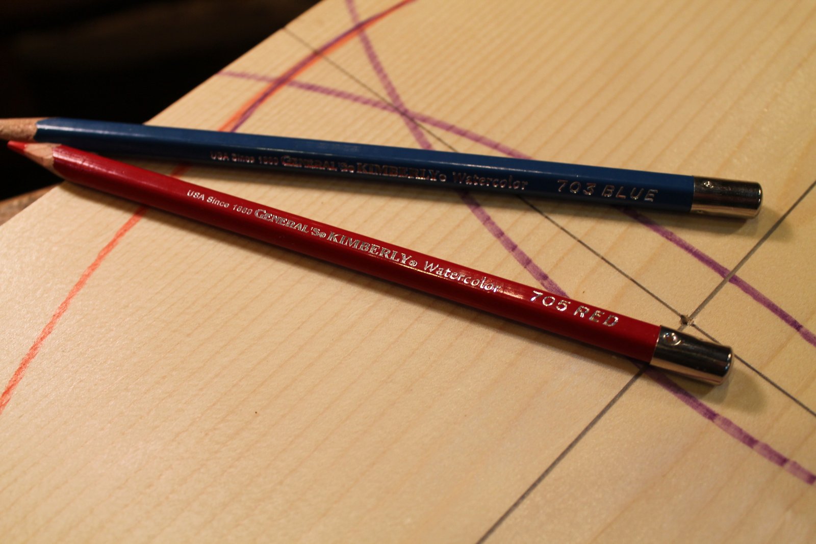 My sample board was dry, but normally I am working with green (wet) wood. I find that watercolor pencils are excellent for marking on it. There is no need to purchase the more expensive brands.