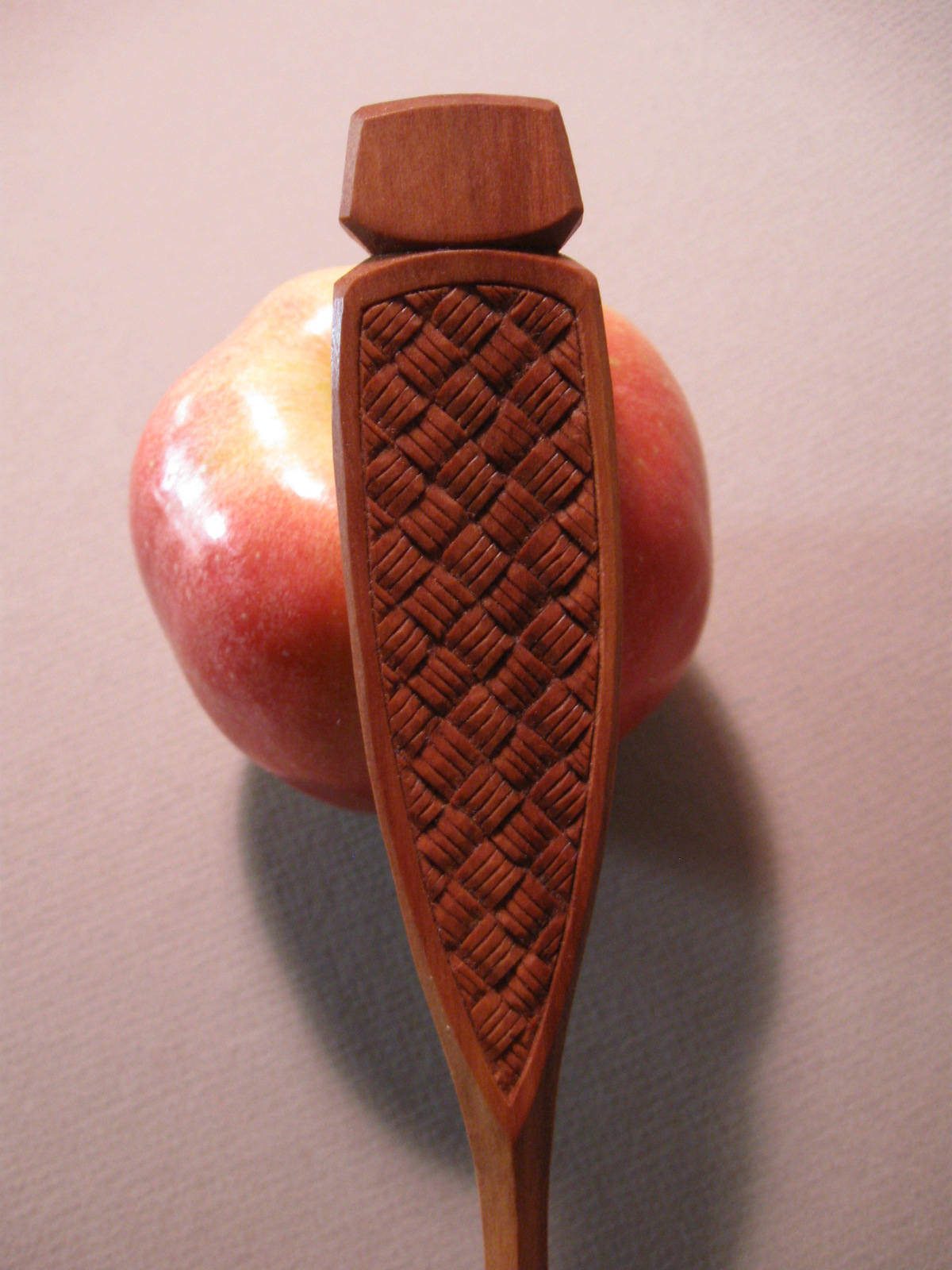 2012 spoon handle basketweave  2012 Spoon maple w chip carved green handle  2014 Plumwood spoon handle - tree  L edie spoon  2012 ...where my own. poem spoon