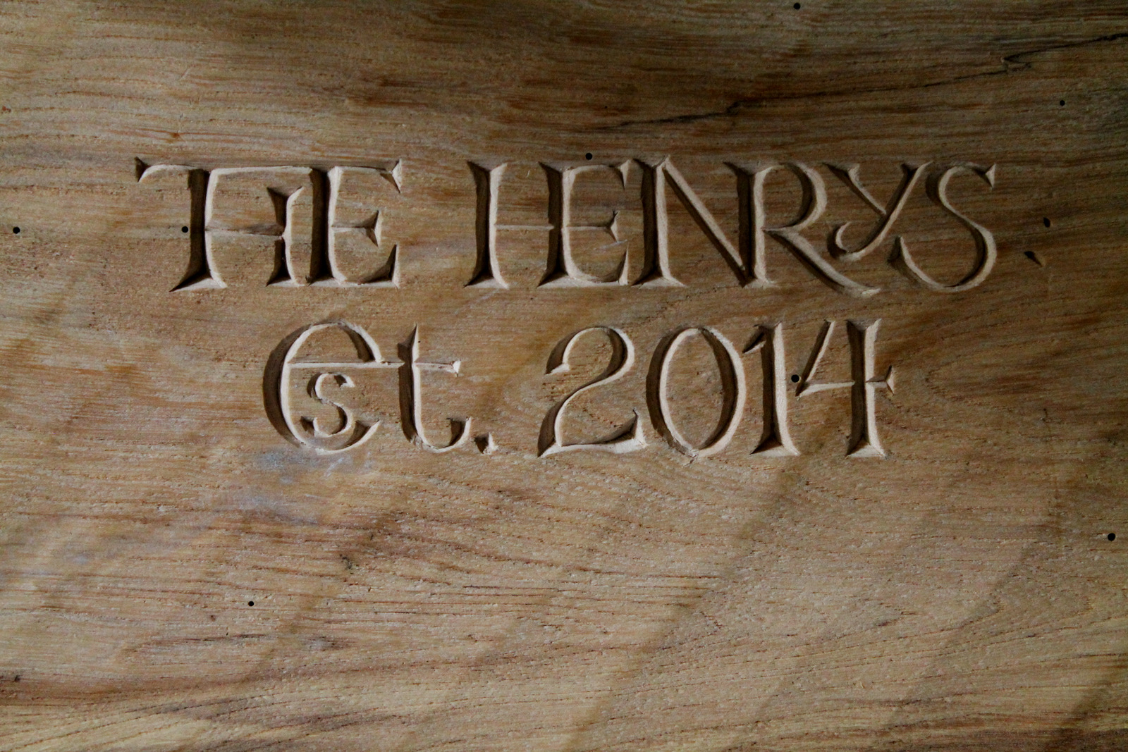 Bill — In some cases, I don’t lay out anything before cutting letters, especially smaller things. Sometimes some interesting things happen when I’m not expecting it. But in most cases, I’ll play around by sketching some ideas on paper, then just write lightly with pencil right onto the wood once I know what I’m going for. For smaller letters, just a general idea marked on the wood, for larger or more formal situations, I’ll be more precise with the drawing. In cases where I’m working on a flat surface, I might get the design pretty exact on paper, rub the back with a pencil, then transfer onto the wood by going over the lines. If the pencil is light and the eraser is good, there is usually no problem with any remaining pencil marks. Most get carved away anyway.