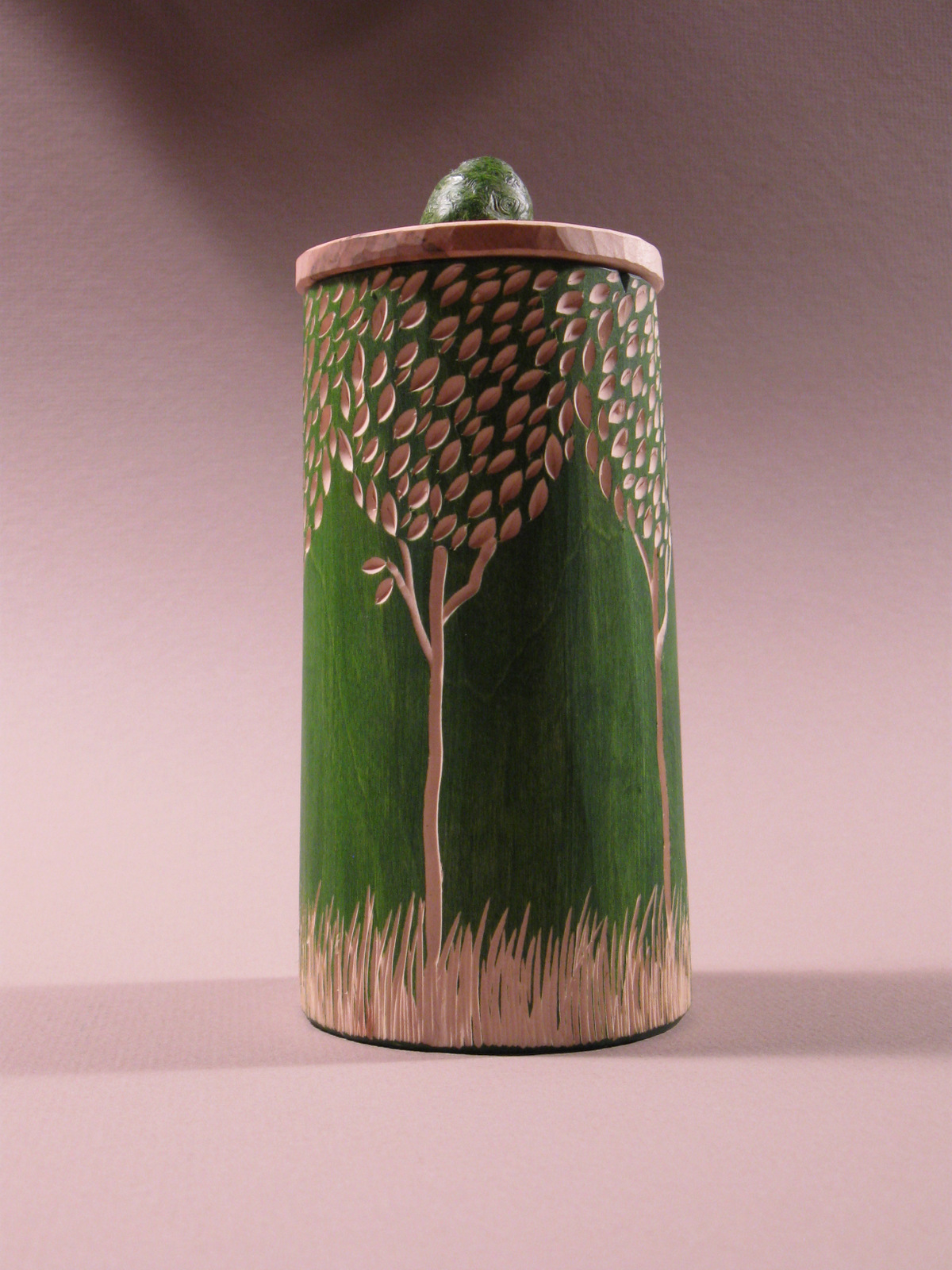 Lighter, neutral-color woods like birch and maple, offer interesting possibilities for paint. Below you can see some more examples, including some in which I carved through the painted surface to reveal the natural wood color beneath. Mix it up and have some fun this spring.