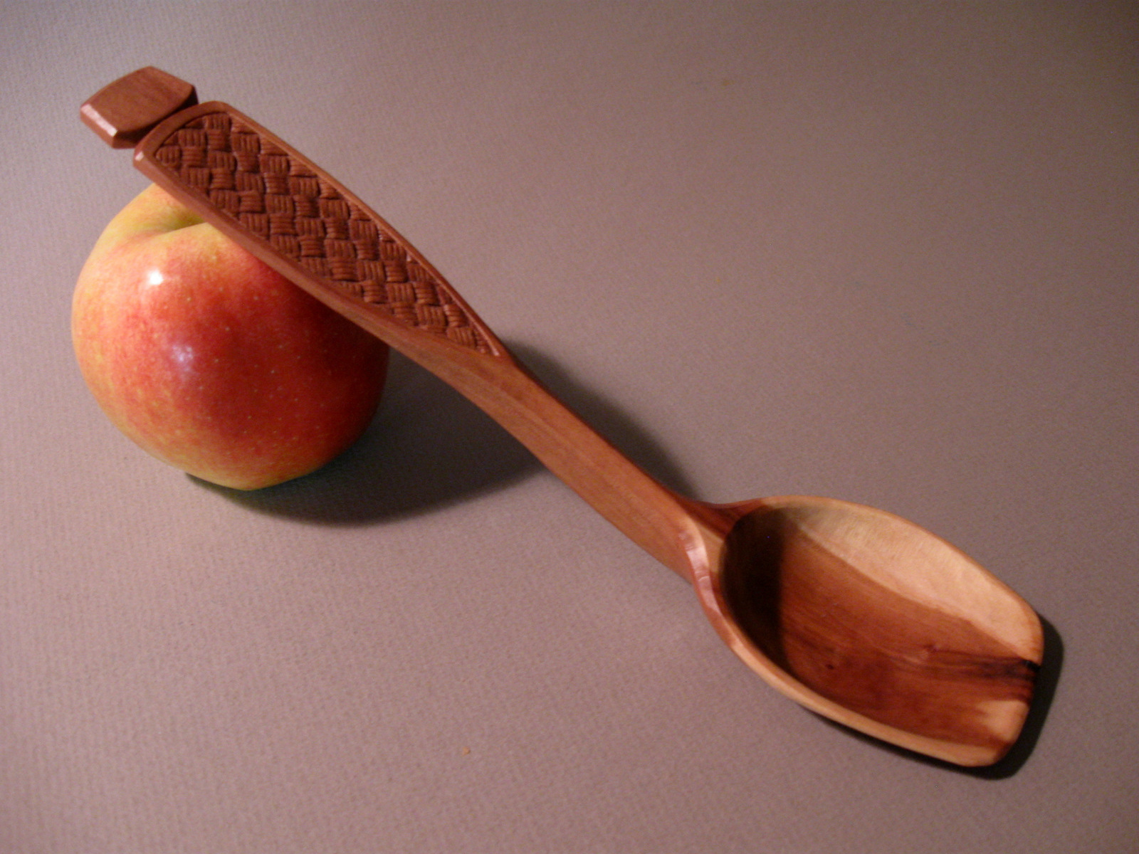 The 9″ spoon I carved from apple wood in 2012 for the collection of Norman D. Stevens.