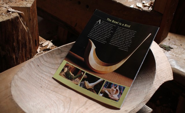 What would April be without birds? They seem to be all over, including on the back cover of the latest Fine Woodworking (#289). Editor Jon Binzen honored me by featuring one of my bird bowls there, trimmed in spring green. I had previously shared the making of that maple bowl in a blog post.