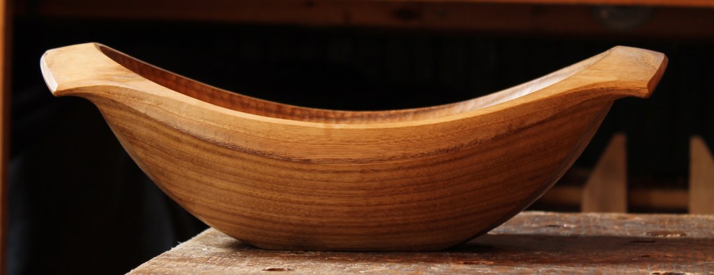 In the case of this bowl, I was considering some chip carving on the side panel like that on the cherry bowl in this post: https://davidffisher.com/2021/06/17/small-side-panel-cherry-bowl/. I would have done so even after the oil, but I decided against it after I saw the oiled effect with the grain.