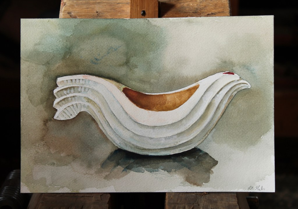 I’ve also been itching to make a couple more hen bowls, especially after receiving this wonderful watercolor painting from Peter Galbert of a bowl I made for him several years ago. Getting this treasure into a proper frame is another project I’m anticipating. Until then, I love to look at Pete’s artistry up close. It allows me to look through his eyes and reminds me to pay attention to the subtle colors all around us that require more than a glance to appreciate.