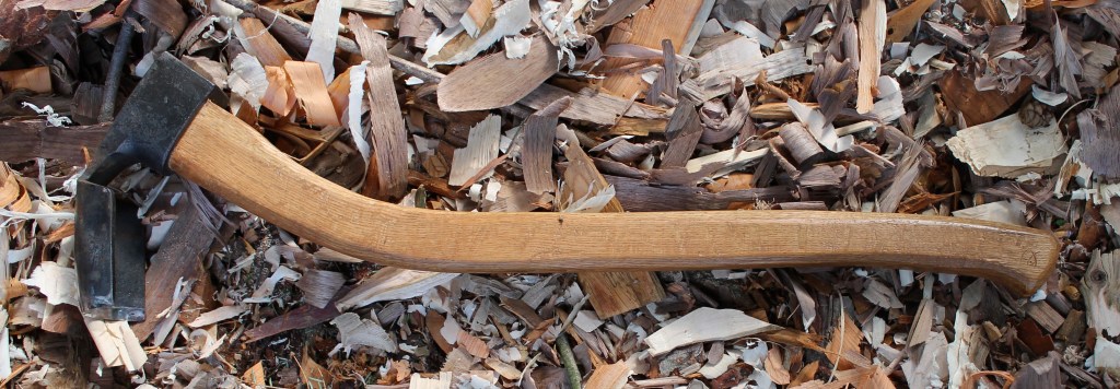 I don’t think this exact one is available any more. The cutting edge is deeply curved and nearly 3″ across. I found some Biber adzes, but it looks like they’ve been radically redesigned. They have a short-handled one now with a design that seems to have been modeled closely on Hans Karlsonn’s adze. But, no matter. Whatever adze you use, consider the proper relationship between the head and handle, something I’ve written about and illustrated in other articles.