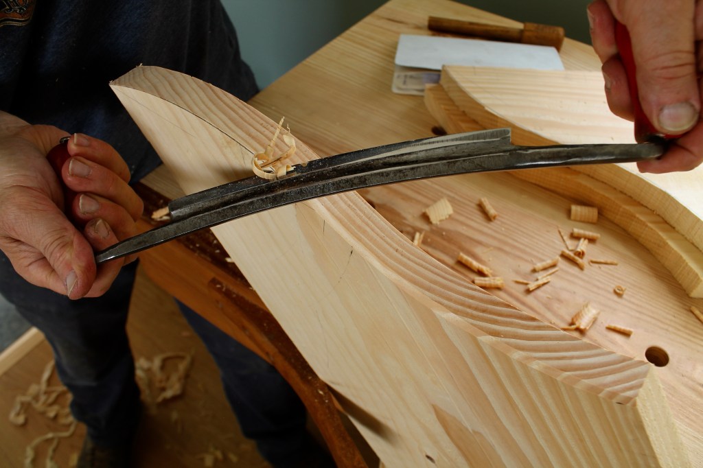 I also used the drawknife to cut a chamfer along both edges of the curve.