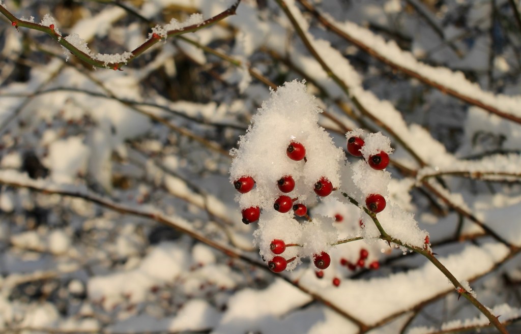 On the first of November, we awoke to a few inches of snow. The familiar trees and plants along the trails had been transformed. Ephemeral ropes of snow clung impossibly to the thinnest branches. I had time to take a morning walk and snap a few photos.
