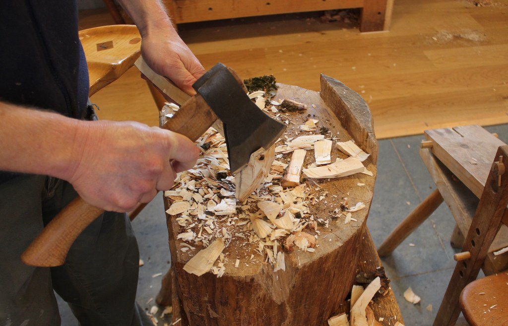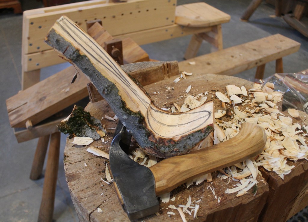 Then I sculpted the contours further with the axe, bringing the ladle to basic shape, ready for knife work.