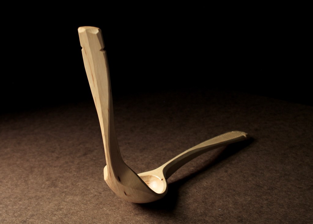 The double-handled spoon can be seen in the lead photo and in the shot above taken a few months ago. I wrote about making it in this post. There are several more photos at that link. Now the exhibition is over and it’s back in my hands. I originally referred to it as the “Spoon of Indecision,” but several readers commented with better titles. When Kalia Kliban commented: “Now that’s what I call a love spoon!”, that struck me as ideal. So call it Love Spoon or whatever you’d like. 12 3/4″ long, 2 3/4″ wide, 8 3/4″ high. $250 includes shipping. SOLD