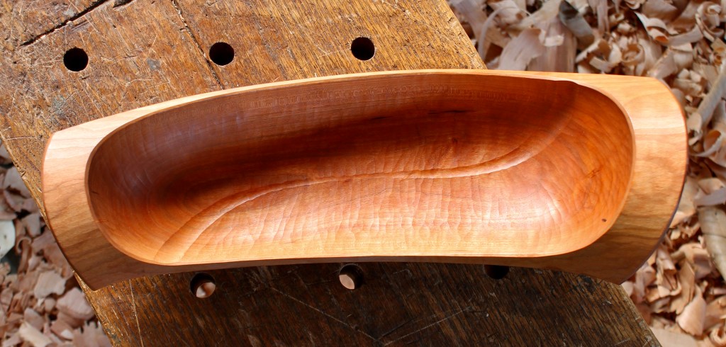 There are a few more photos of the finished bowl below. It’s 17 1/4″ long, 6″ wide, and 5″ high. SOLD