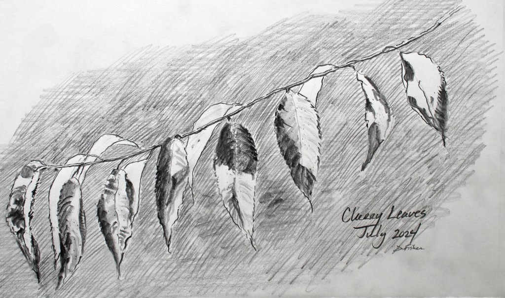 I didn’t design the pattern with any particular leaves in mind, but it is reminiscent of how black cherry tree leaves line up along their long slender twigs.