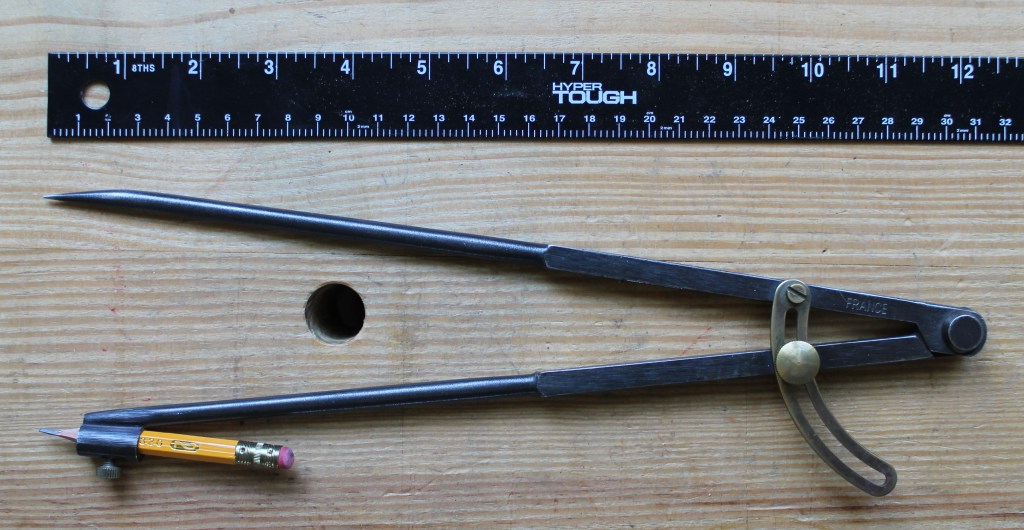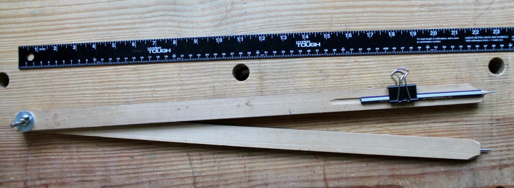 I haven’t been able to locate a large compass over here so I took to adapting a pair of 8″ internal dividers I’ve had since my youth in England attaching the pencil by means of a cable tie. Never thought of trying to make my own but you’ve inspired me. That’s something I have to commend you on, not only your ability to “‘make a plan” but more importantly, your willingness to share your plans with others. Thanks.