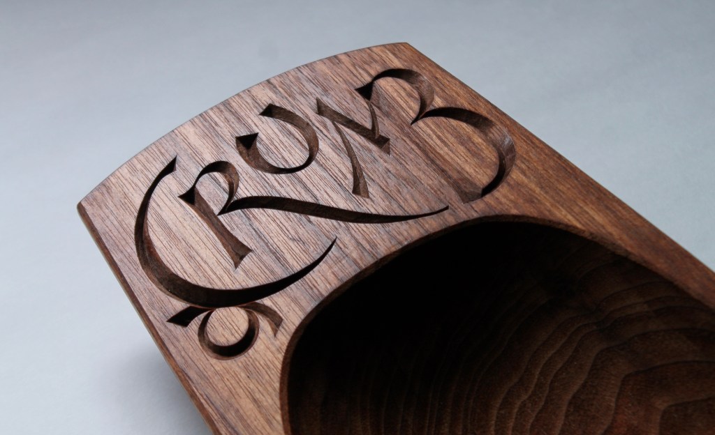 I adjust my letter carving technique depending on the size and style of the letters as well as according to the hardness of the wood. In the case of this walnut, I began with a v-tool after transferring my drawing to the wood with graphite paper.