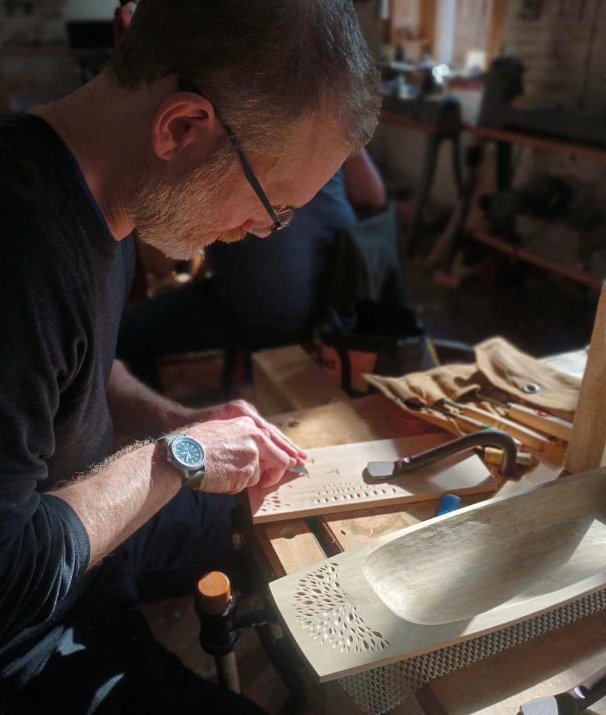 There’s what it looks like after the v-tool work. Ready for the more painstaking knife and gouge stage.