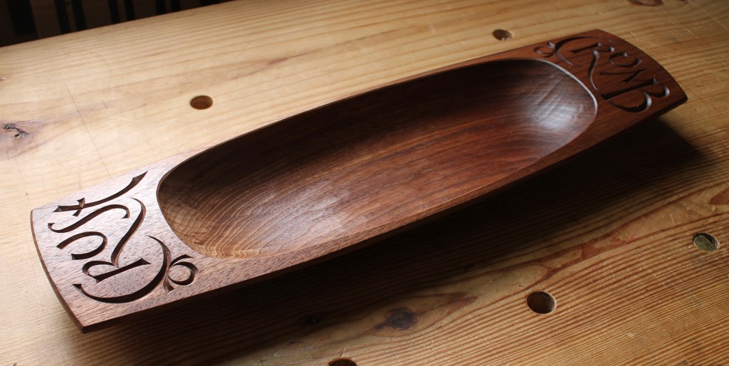 If you’re interested in purchasing this walnut bowl, please email me at dandkfish@gmail.com. It is 21″ long, 6″ wide, and 2″ high. The price of $950 includes shipping. SOLD