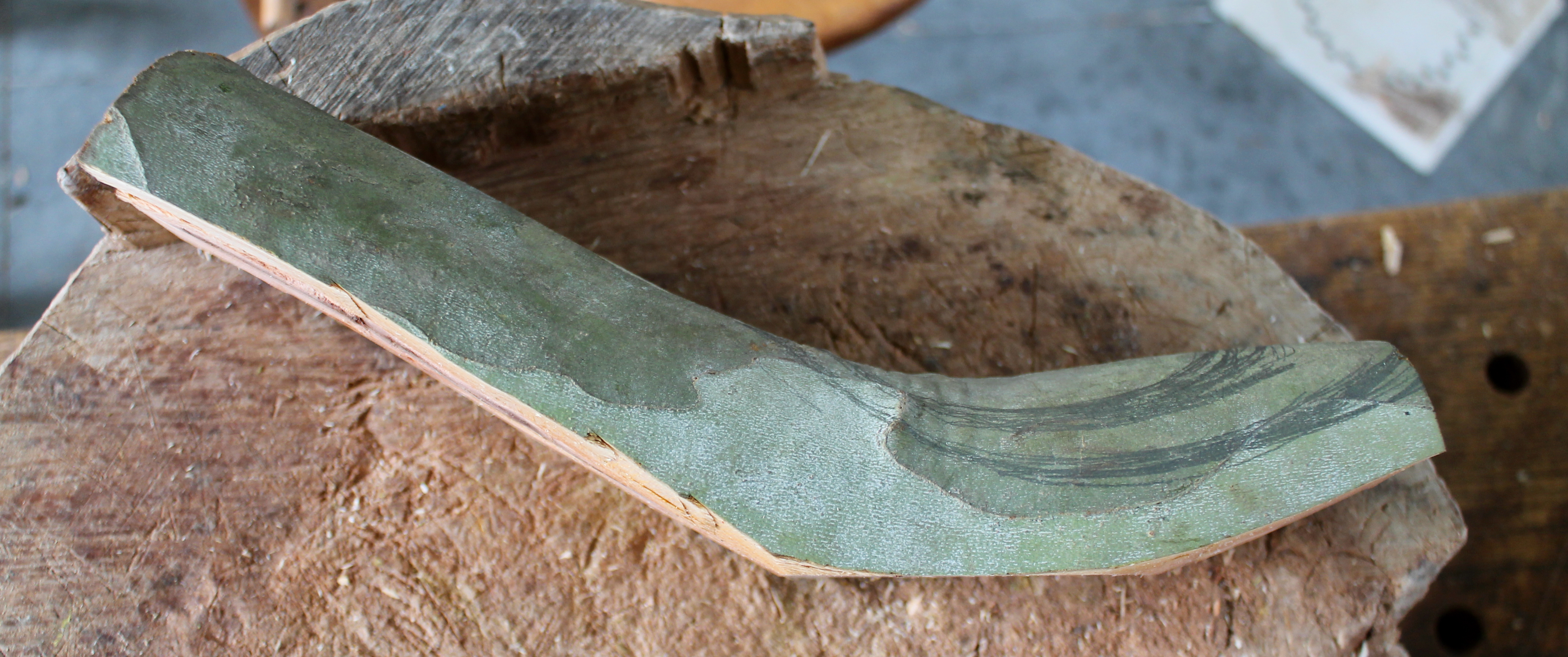 In a post last month, I showed these in the raw basswood stage. Plain basswood can be a little lackluster, so I played around with some different milk paint techniques and combinations. We’ll be exploring those in class. I’ve also used artist oils (linseed oil paint) before, but the dry time would make it inconvenient for a class setting as students pack their still-wet painted bowls into luggage.