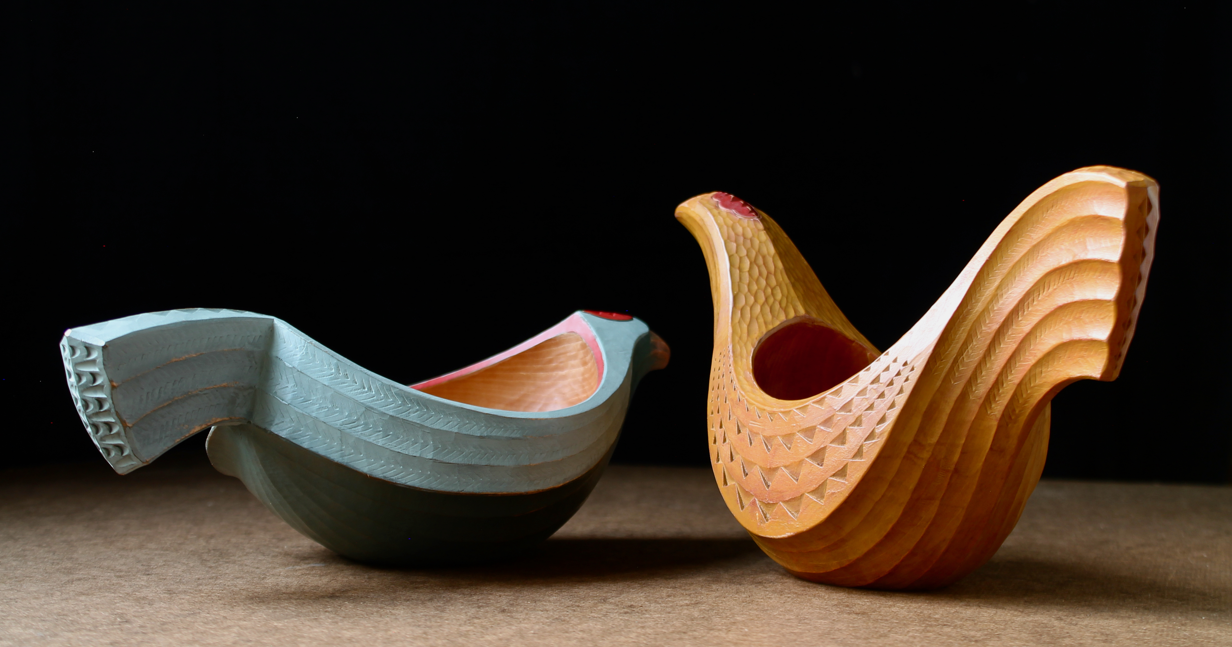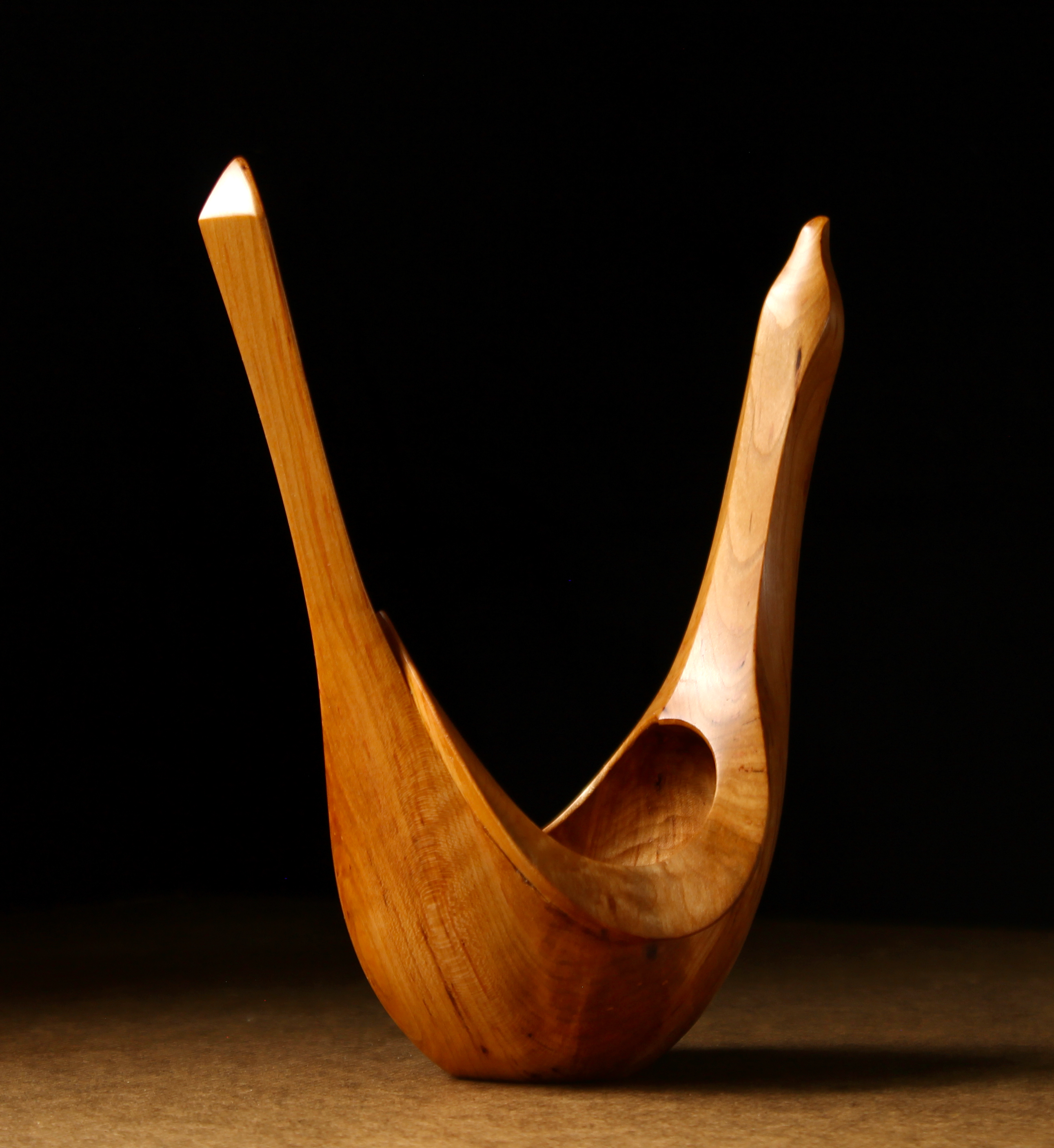 And even though we won’t be carving from green branch crooks, our methods will translate to that sort of work as well. So I’ll have some examples and we’ll be discussing the considerations for working with green wood and the possibilities presented by crooks. As an example, I carved this little goose-inspired bowl from a crooked bit of American sycamore. Like a spoon with a tail.