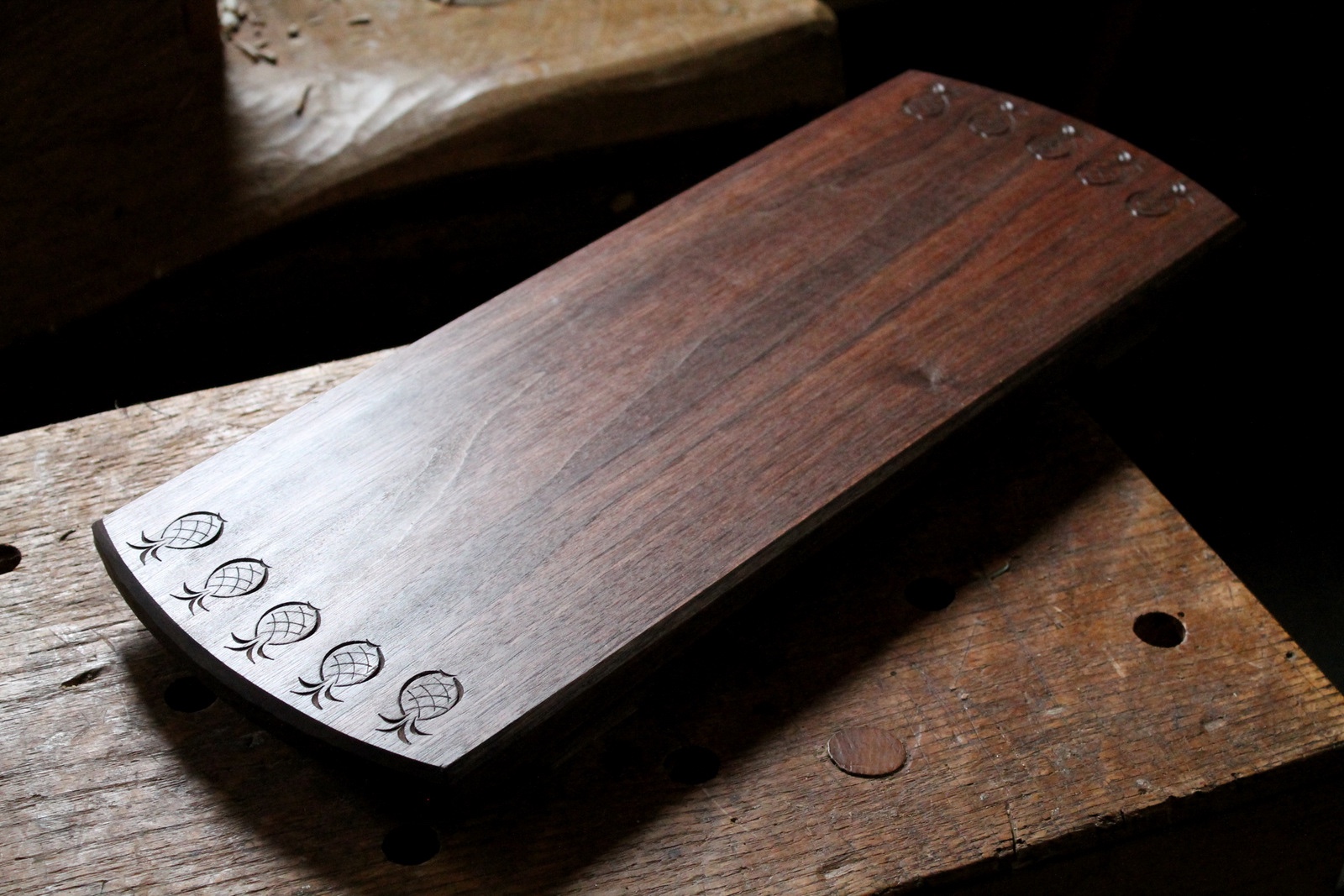 Above is another example of creative gouge chips, a pineapple pattern on a serving board. More about that in this old post. Now back to the shrink pot: