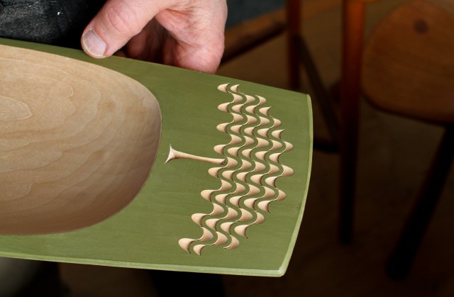 This goose-inspired bowl will be flying to Pete’s. I carved it from a 3″ x 6″ x 18″ chunk of dry basswood (a.k.a. lime or linden). Basswood is commonly available is sizes like this, and even thicker, at hardwood lumber dealers and many feature online delivery. The same designs can be carved starting from a green log as well. Before June, I’m going to continue to experiment with other bird-inspired designs that will make their way to Pete’s new barn, and we may even work in a little bird time in my Bowl Exploration class next month.
