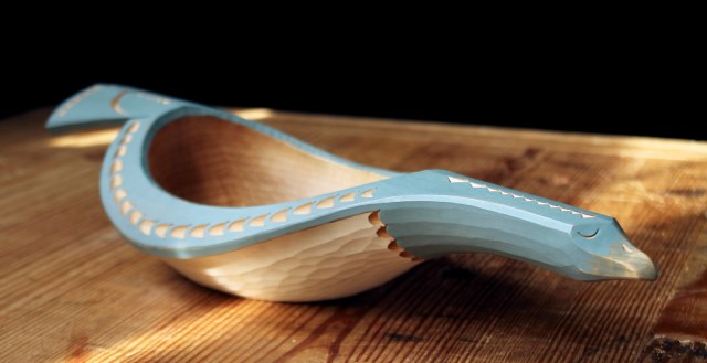 The general procedure and approach we’ll use to carve our bowls in class is the same as that I use to carve all of my bird bowls, so it will be adaptable to whatever forms students want to explore back at home with whatever wood they wish to use. Students will make their own decisions along the way, so each bowl will be as unique as they wish. While they’ll be going home with a couple bowls, it’s the knowledge and skills they’ll be taking with them that will mean the most: interpreting, visualizing, layout, understanding grain direction, decorative carving, creating texture, sharpening, painting and color possibilities…. lot’s of good stuff!