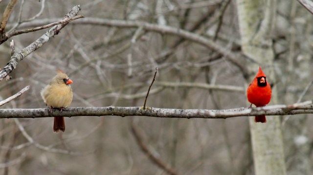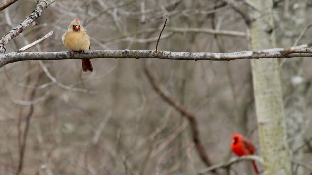 Now, back to the real birds outside my shop window; a most pleasant distraction. This week, I set up the camera in the window and snapped a few photos. I’ll share this series of four photos featuring a pair of cardinals. Of course, the bright red males are well known for their striking color, but I especially appreciate the females with their subtle touches of red among the buff, yellows, and muted grays.