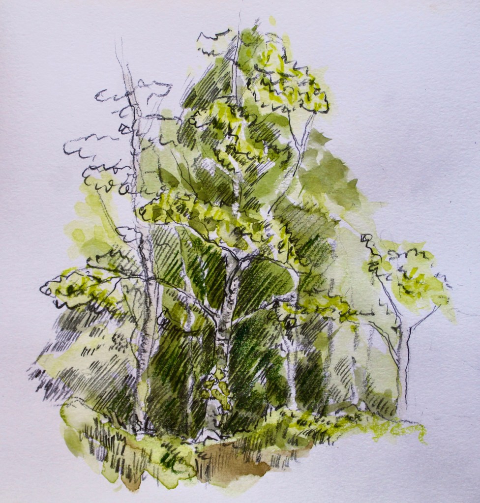My workshop is our attached garage at one end of the house. While it’s not an idyllic cabin-shop among the trees, I did get pretty lucky that there is a grove of quaking aspens just outside one window. For much of the year the leaves, with their flat wispy stalks, “quake” and flutter in the slightest breeze. It’s such a soothing sound and the trees shimmer like sequined dancers.