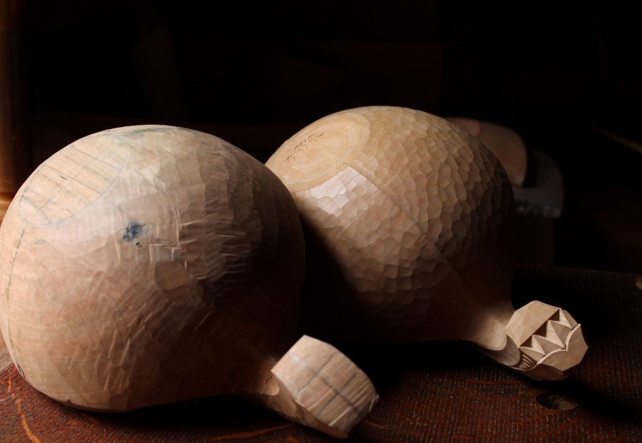 Spokeshave marks on the left, gouge texture on the right.
