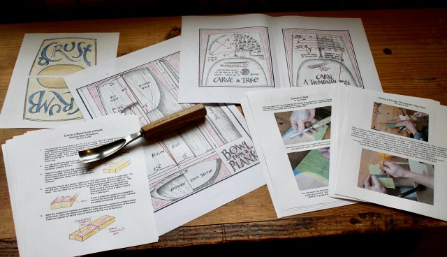 I’ve hand drawn full-size plans and patterns and written step-by-step procedures, illustrated with drawings and photographs, to lead you through the carving of the bowl and decorative motifs for the handles. You’ll get access to the downloadable and printable PDFs of everything. If you wish to print at full size, the main bowl plans will print on 11 x 17 paper at your local print shop (or try card stock for cutting out patterns to trace directly). You can also print them on 8.5 x 11 paper if you set the scale on your print menu to 75%. Everything else will print on 8.5 x 11 paper, or just access the materials directly from your computer or phone anytime.