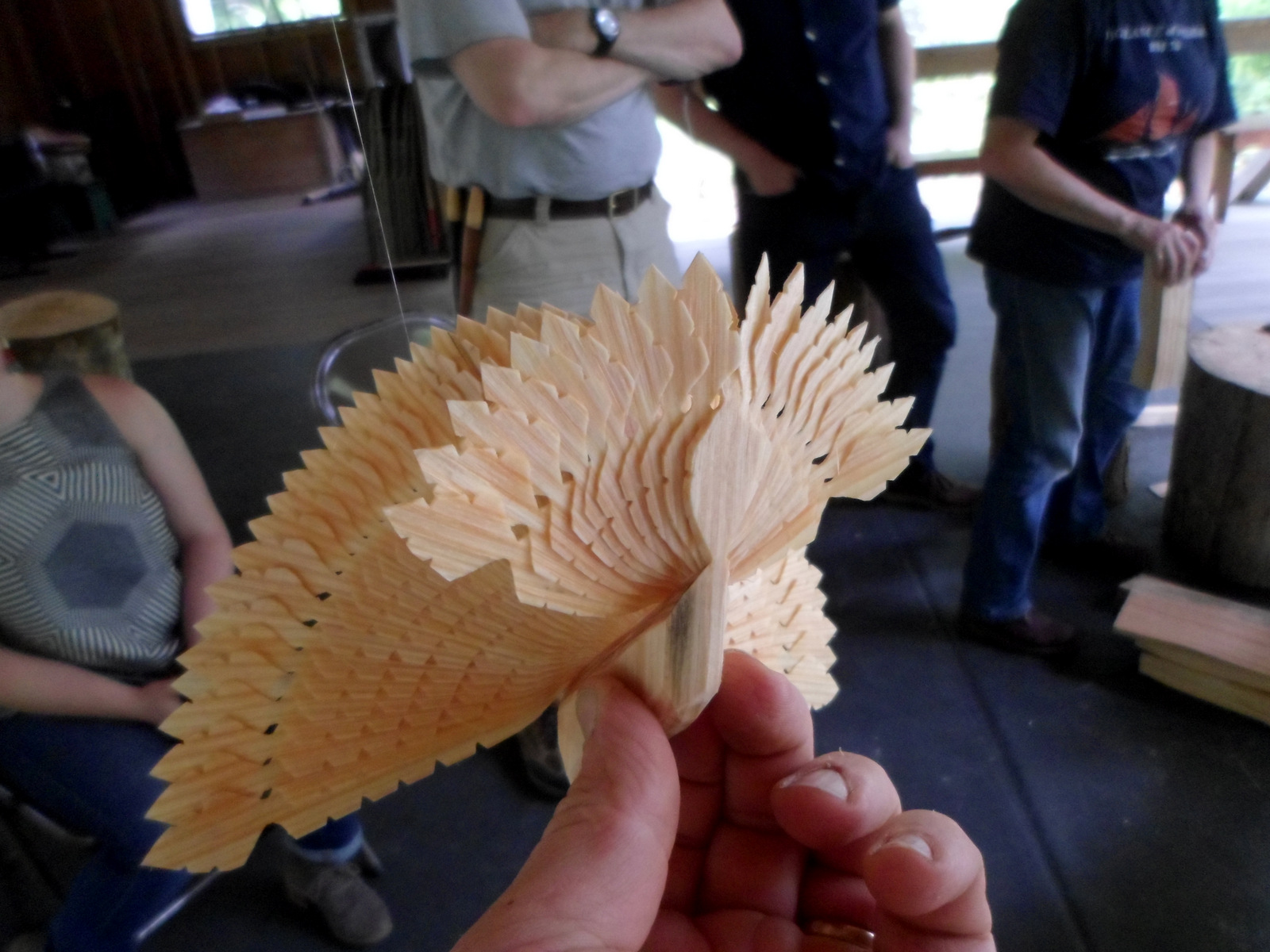 Underside of a fan bird carved from pine by Jane Mickelborough.